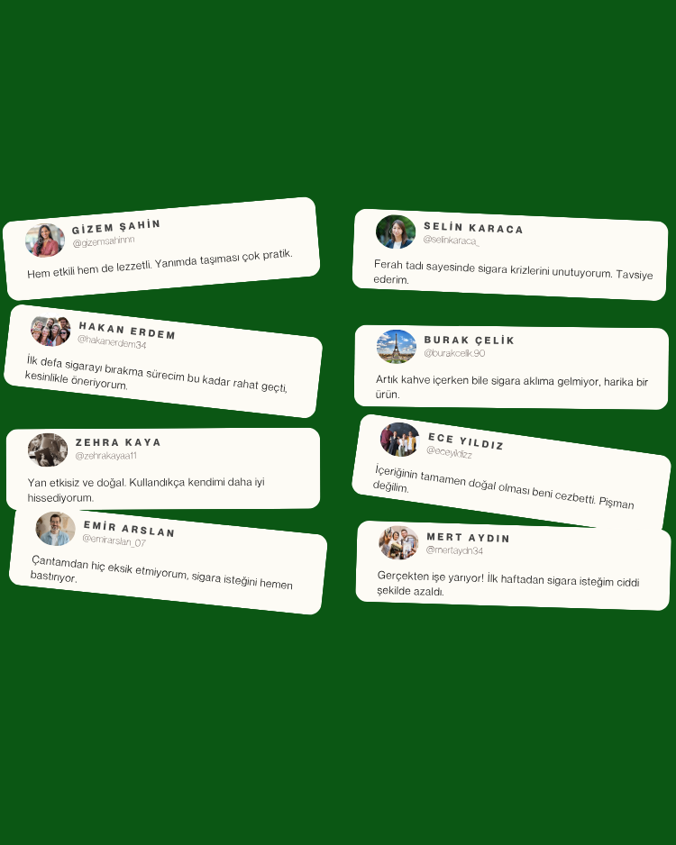 SmokeExit ile sigarayı bırakma yolculuğunuz daha kolay ve destekli olacak. İlk günlerde yoksunluk belirtileri hafifler, sigara isteğiniz azalır. Doğal bitkisel içerikler sayesinde bedeniniz rahatlar, ferah bir nefes almaya başlarsınız. Düzenli kullanımda, bağımlılığınızın üstesinden gelerek sağlıklı ve özgür bir yaşama adım atarsınız.